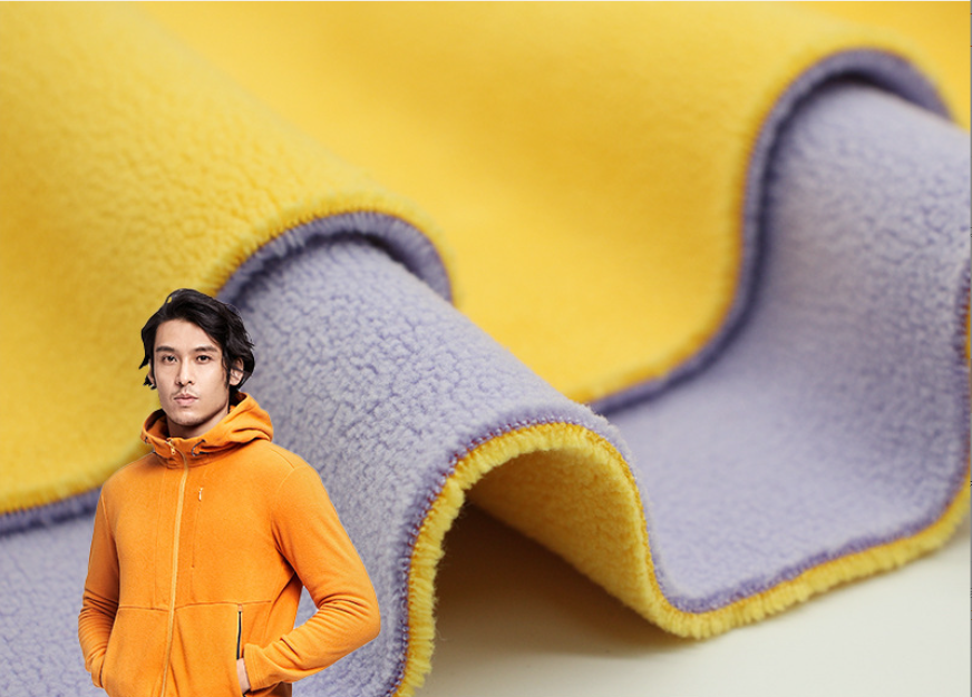 510-530克對貼雙色高彈奧粒絨複合布料彈力雙色搖粒絨外套面料