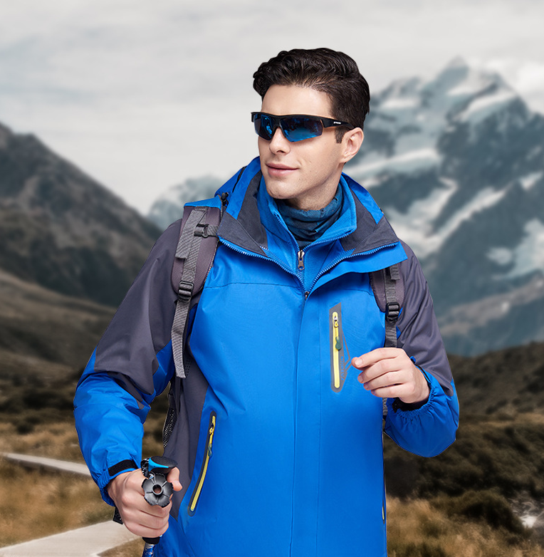 表面防潑水背面貼透氣膜加可特網三合一面料,擁有良好的透氣防水功能,採用100%滌綸絲織造,4級染色陞級嚴格按照國家標準,面料精美,挺括抗磨,色澤亮麗