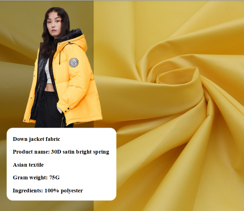 30D緞面亮光春亞紡高檔羽絨服面料防絨防水棉服布料….